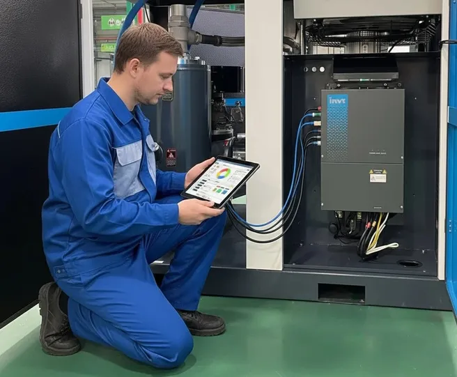 Контроль рабочих параметров: расход масла, вибрация подшипников, осмотр фильтров, клапанов, шлангов, натяжение ремней, замер силы тока и напряжения, подготовка рекомендаций.