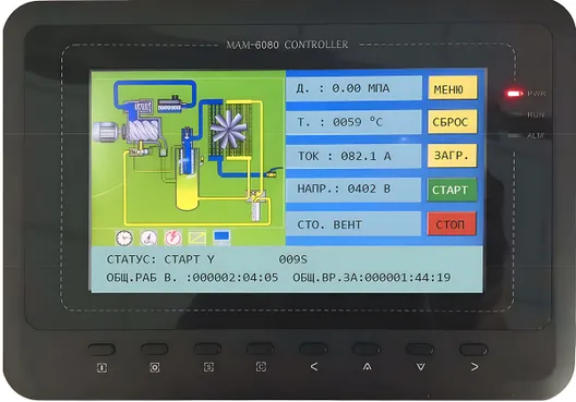 • цветной жидкокристаллический дисплей на русском языке с подсветкой обеспечивает возможность установки и корректировки параметров компрессора;