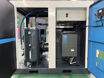 Главный двигатель компрессора и привод вентилятора — оснащены инновационными частотными преобразователями компании INVT (при желании клиента возможны альтернативы от Siemens или ABB), обеспечивающими максимальную эффективность энергопотребления и исключительную точность управления оборудованием. Инверторы объединены в единое электронное управление, упрощая монтаж и настройку устройств.
