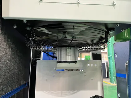Высокоэффективные вентиляторы системы охлаждения позволяют значительно снизить температуру сжатого воздуха на выходе компрессорной установки.