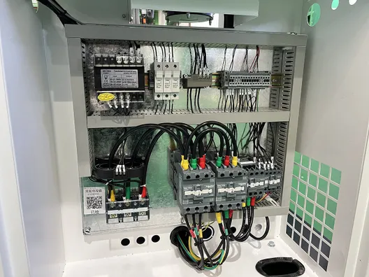 Электрощит интегрируется в специально разработанный звукопоглощающий кожух, выполненный таким образом, чтобы обеспечить удобный доступ ко всем внутренним элементам электрощита, включая автоматические выключатели, предохранители и прочие элементы электроснабжения. Техническое обслуживание и ремонт устройств внутри щитка значительно упрощается.