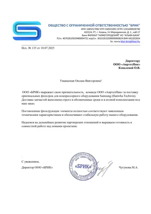 Отзывы и благодарственные письма клиентов